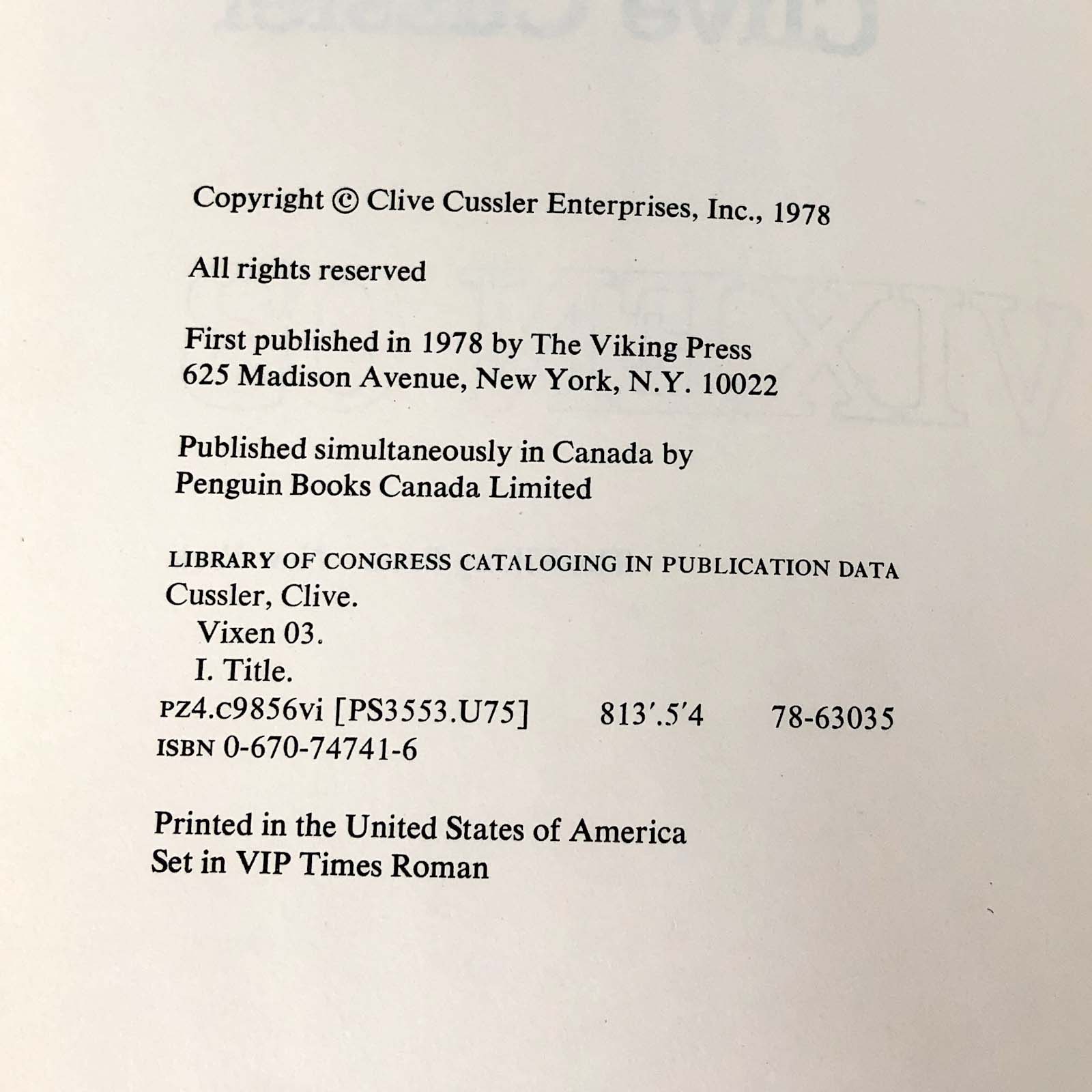 ![Vixen 03 by Clive Cussler [FIRST EDITION • FIRST PRINTING] 1978](http://bookshopapocalypse.com/cdn/shop/products/vixen03-10.jpg?v=1681441480&width=1445)